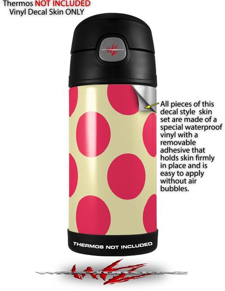 Skin Decal Wrap for Thermos Funtainer 12oz Bottle Kearas Polka Dots Pink On Cream (BOTTLE NOT INCLUDED) by WraptorSkinz