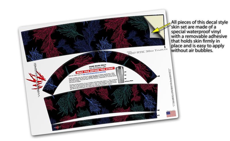 WraptorSkinz® skin wraps for 2017 RTIC Tumblers are printed using superb photo quality designs and vibrant colors printed with special fade resistant inks that last even in direct sun for years. WraptorSkinz® are a composite of two layers of commercial grade materials. The bottom layer is a soft, flexible vinyl with a special removable adhesive that is easily positioned, applied without air bubbles. Next we print the bottom layer with UV protected, fade resistant inks that deliver superb photo quality designs in vibrant colors. Finally we bond a professional grade laminate over the entire skin adding a glossy protective finish.