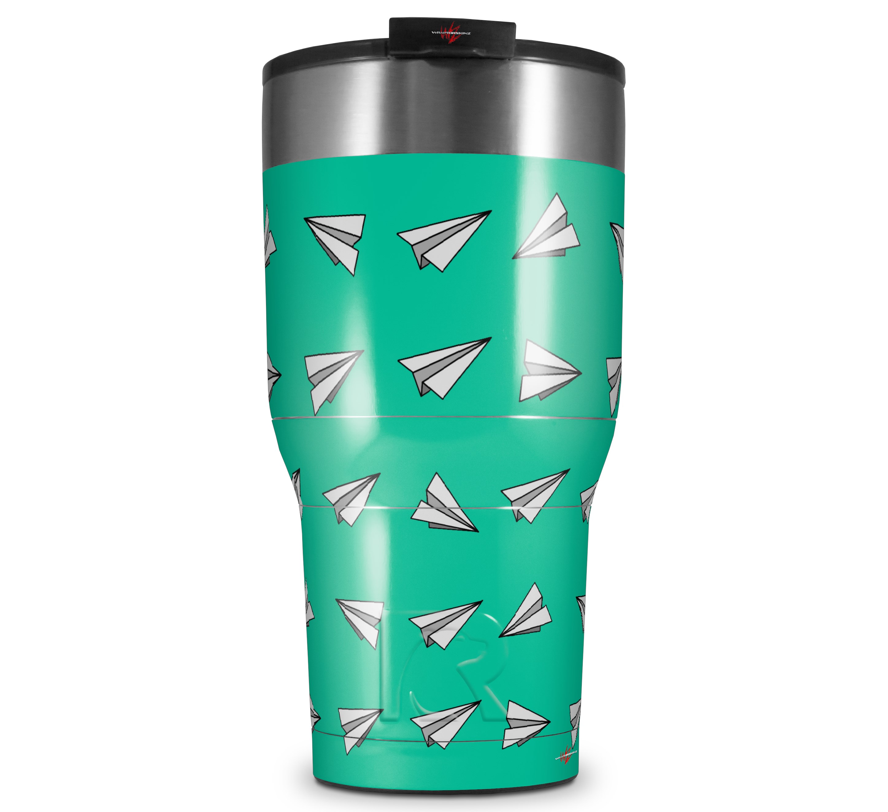 WraptorSkinz Skin Wrap compatible with 2017 and newer RTIC Tumblers 30oz Paper Planes Turquoise (TUMBLER NOT INCLUDED)