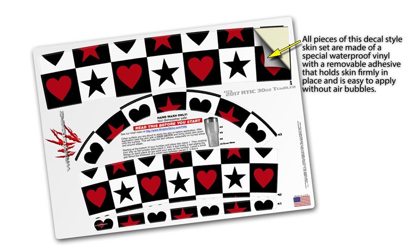WraptorSkinz Skin Wrap compatible with 2017 and newer RTIC Tumblers 30oz Hearts and Stars Red (TUMBLER NOT INCLUDED)
