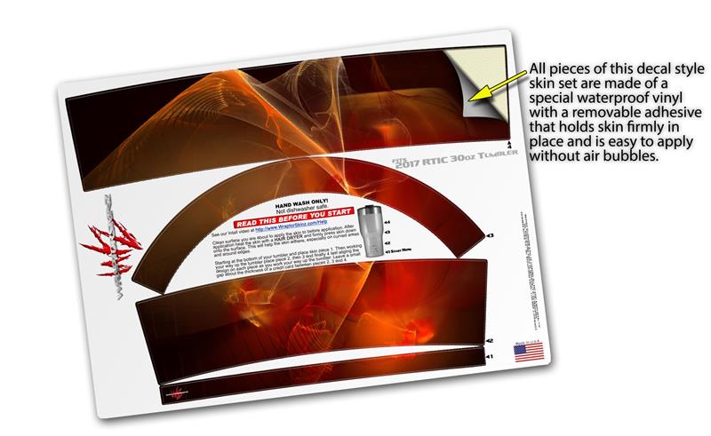 WraptorSkinz® skin wraps for 2017 RTIC Tumblers are printed using superb photo quality designs and vibrant colors printed with special fade resistant inks that last even in direct sun for years. WraptorSkinz® are a composite of two layers of commercial grade materials. The bottom layer is a soft, flexible vinyl with a special removable adhesive that is easily positioned, applied without air bubbles. Next we print the bottom layer with UV protected, fade resistant inks that deliver superb photo quality designs in vibrant colors. Finally we bond a professional grade laminate over the entire skin adding a glossy protective finish.