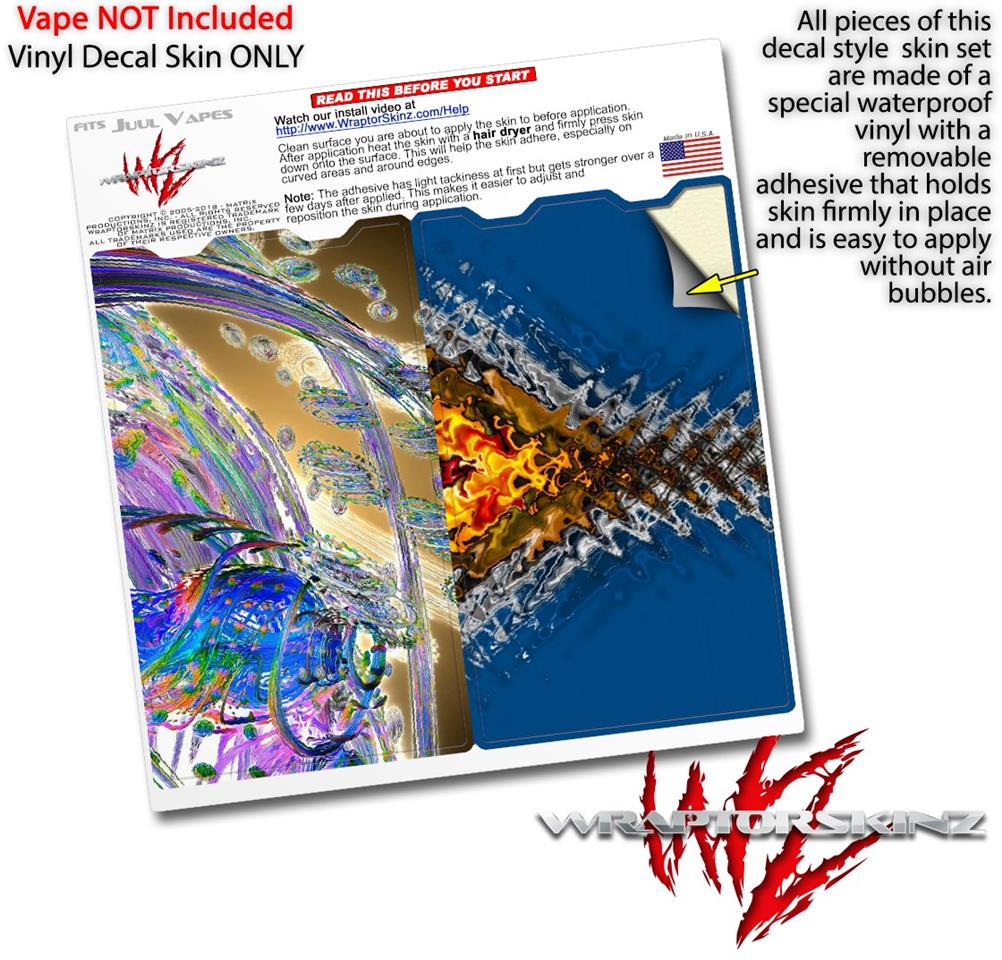 WraptorSkinz® skin wraps are printed using superb photo quality designs and vibrant colors printed with special fade resistant inks that last even in direct sun for years. WraptorSkinz are a composite of two layers of commercial grade materials. The bottom layer is a soft, flexible vinyl with a special removable adhesive that is easily positioned, applied without air bubbles. Next we print the bottom layer with UV protected, fade resistant inks that deliver superb photo quality designs in vibrant colors. Finally we bond a professional grade laminate over the entire skin adding a glossy protective finish. This product is not affiliated with or endorsed by the Juul brand.