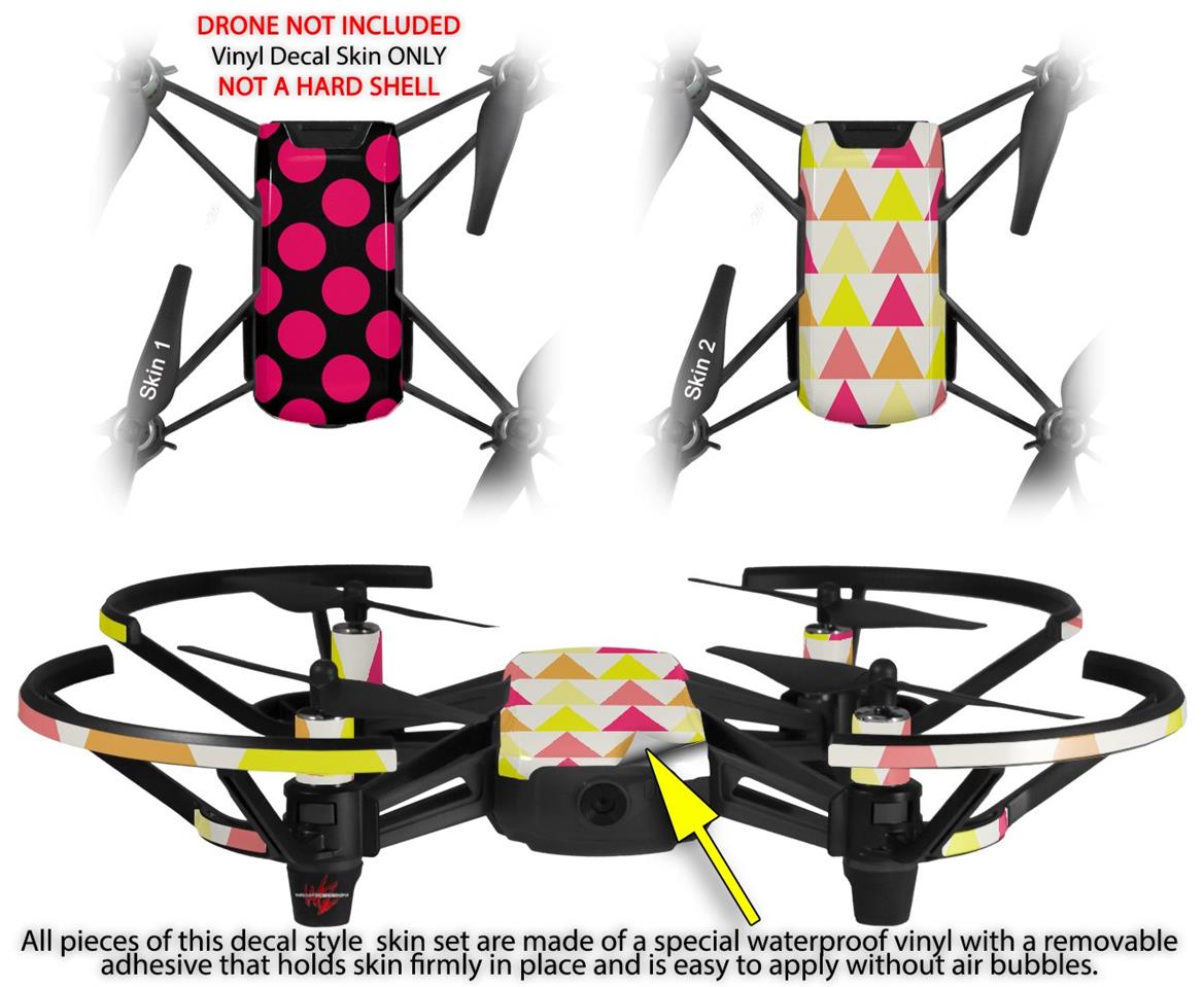 Skin Decal Wrap 2 Pack for DJI Ryze Tello Drone Kearas Polka Dots Pink On Black DRONE NOT INCLUDED