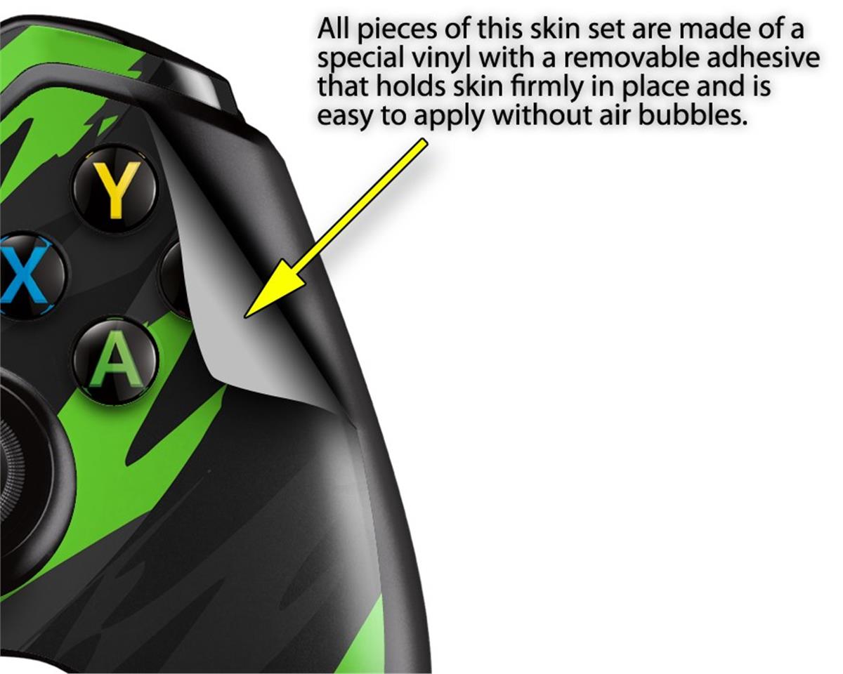 WraptorSkinz® wraps for the XBOX One controller are self-adhering vinyl skins that help prevent scratches and look great. Unlike bulky silicon and plastic covers, WraptorSkinz XBOX 1 skins are designed to be thin and very tough. WraptorSkinz are a composite of two layers of professional grade materials. The bottom layer is a soft, flexible vinyl with a special removable adhesive that is easily positioned and applied without air bubbles. The bottom layer of the XBOX One Controller skin is printed with special UV protected, fade resistant inks that deliver superb photo quality designs in vibrant colors. Finally, we bond a professional grade laminate over the entire XBOX One skin adding a glossy protective finish.