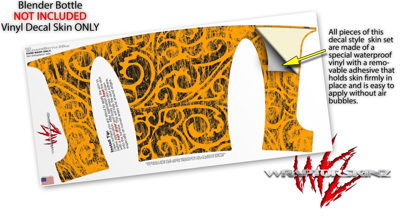 Decal Style Skin Wrap works with Blender Bottle 20oz Folder Doodles Orange (BOTTLE NOT INCLUDED)