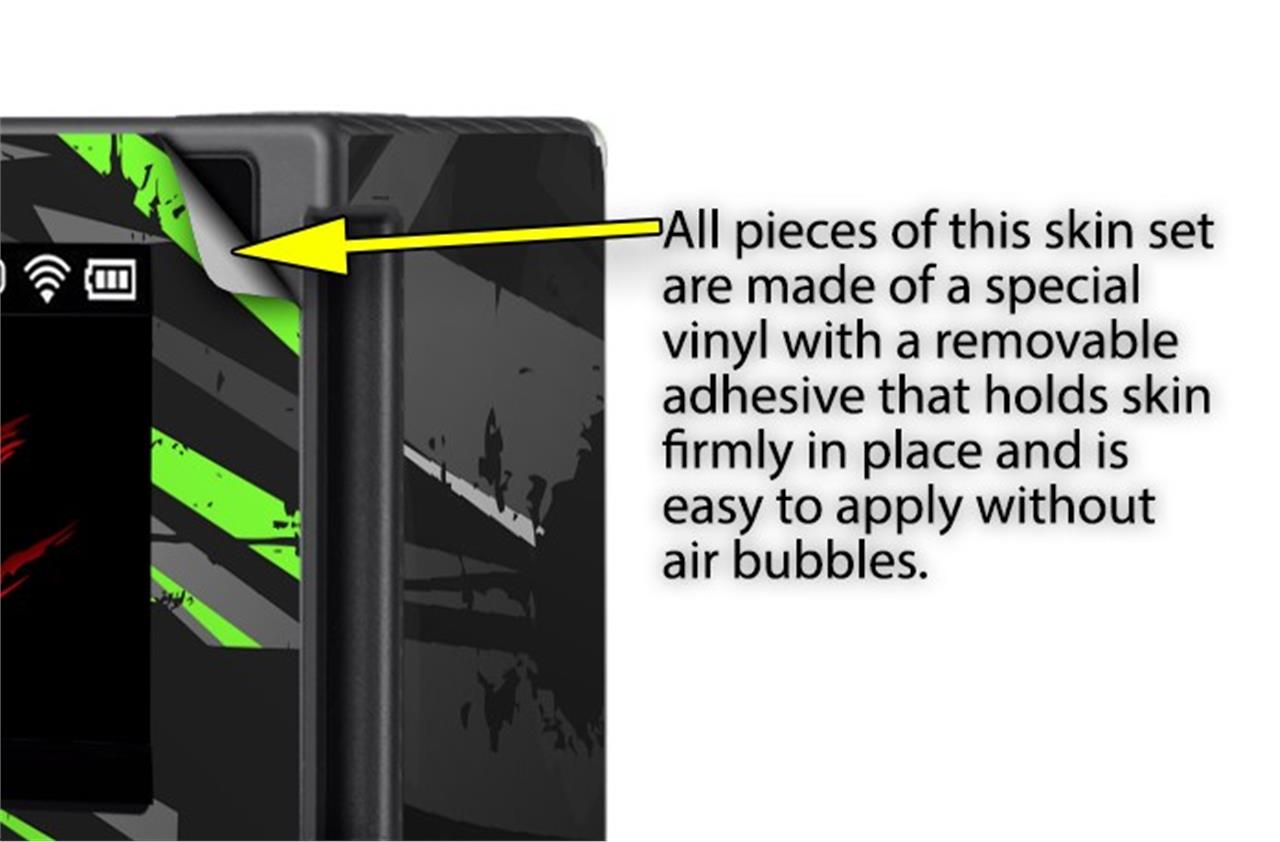 WraptorSkinz® skins are superb photo quality designs and vibrant colors printed with special Eco-Friendly, fade resistant inks. Our skins are self-adhering flexible vinyl skins that helps prevent scratches. Made of composite, multi-layered commercial grade materials. The bottom layer is made with a special removable adhesive that is easily positioned and applied without air bubbles. We print your design on the bottom layer then bond a professional grade laminate over the entire skin adding a glossy protective finish.