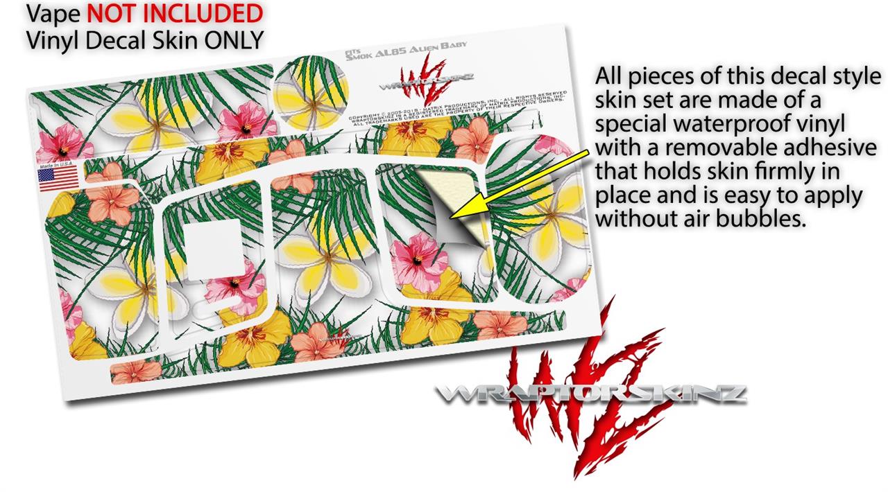 Skin Decal Wrap for Smok AL85 Alien Baby Beach Flowers 02 White VAPE NOT INCLUDED