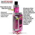 WraptorSkinz® skin wraps are printed using superb photo quality designs and vibrant colors printed with special fade resistant inks that last even in direct sun for years. WraptorSkinz are a composite of two layers of commercial grade materials. The bottom layer is a soft, flexible vinyl with a special removable adhesive that is easily positioned, applied without air bubbles. Next we print the bottom layer with UV protected, fade resistant inks that deliver superb photo quality designs in vibrant colors. Finally we bond a professional grade laminate over the entire skin adding a glossy protective finish. This product is not affiliated with or endorsed by the Smok brand.