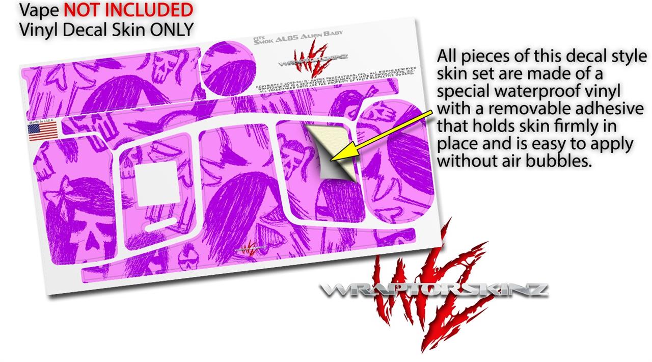 Skin Decal Wrap for Smok AL85 Alien Baby Skull Sketches Purple VAPE NOT INCLUDED