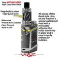 WraptorSkinz® skin wraps are printed using superb photo quality designs and vibrant colors printed with special fade resistant inks that last even in direct sun for years. WraptorSkinz are a composite of two layers of commercial grade materials. The bottom layer is a soft, flexible vinyl with a special removable adhesive that is easily positioned, applied without air bubbles. Next we print the bottom layer with UV protected, fade resistant inks that deliver superb photo quality designs in vibrant colors. Finally we bond a professional grade laminate over the entire skin adding a glossy protective finish. This product is not affiliated with or endorsed by the Smok brand.