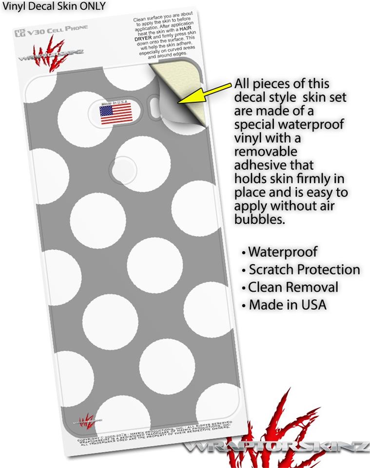 Skin Decal Wrap for LG V30 Kearas Polka Dots Whtie On Gray