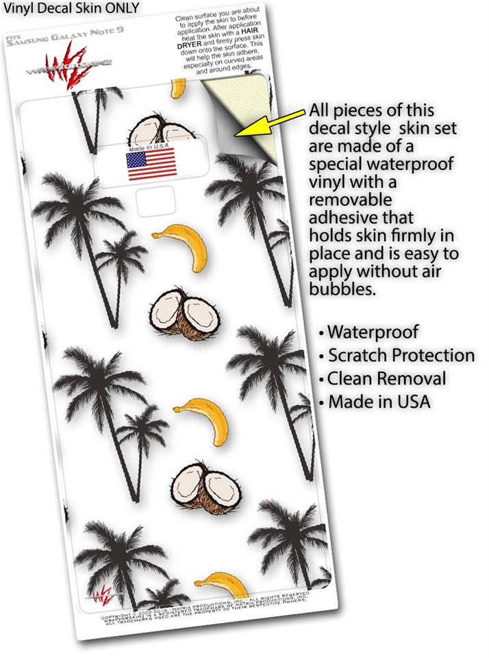 Decal style Skin Wrap compatible with Samsung Galaxy Note 9 Coconuts Palm Trees and Bananas White