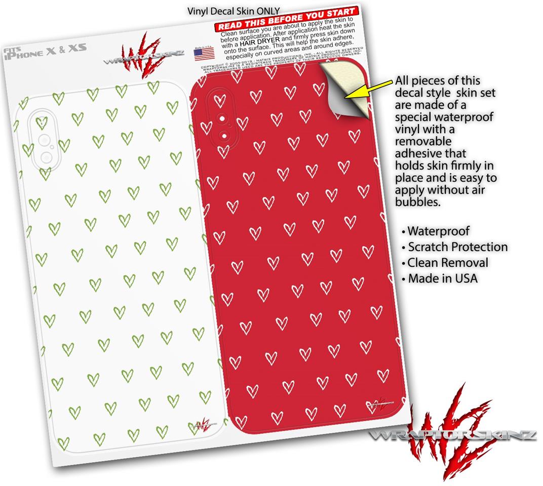 2 Decal style Skin Wraps set for Apple iPhone X and XS Hearts Green