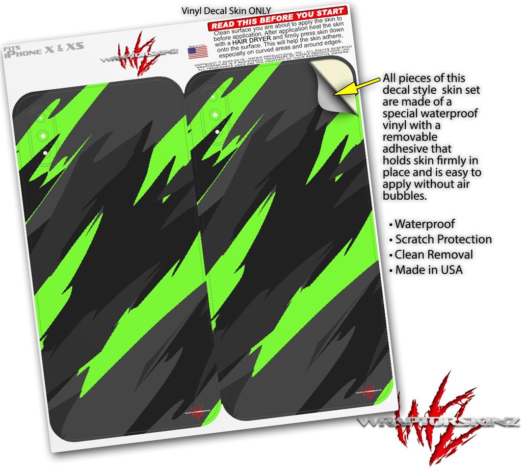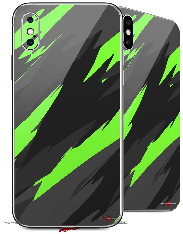 2 Decal style Skin Wraps set for Apple iPhone X and XS Jagged Camo Neon Green