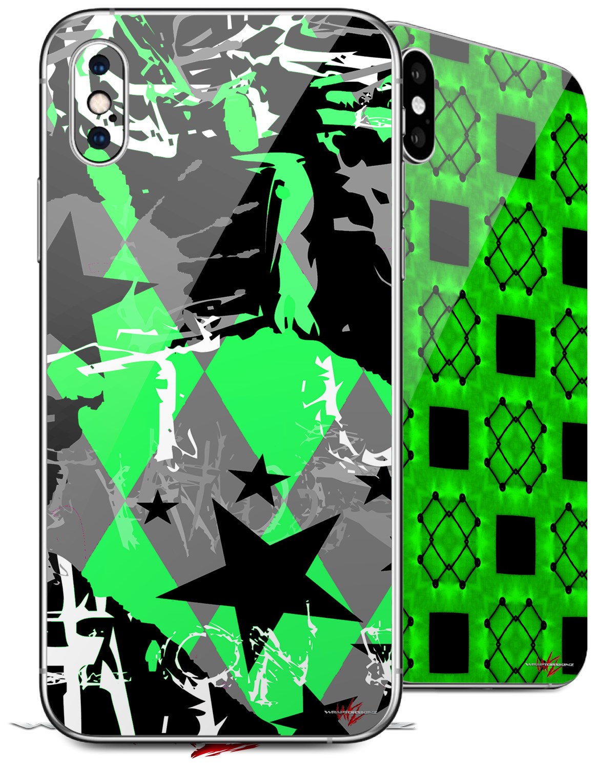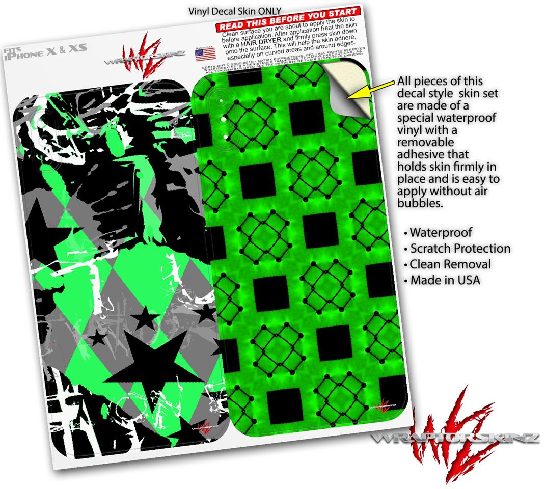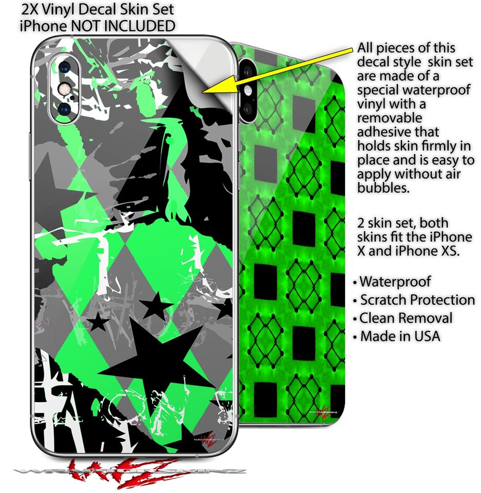 2 Decal style Skin Wraps set for Apple iPhone X and XS SceneKid Green