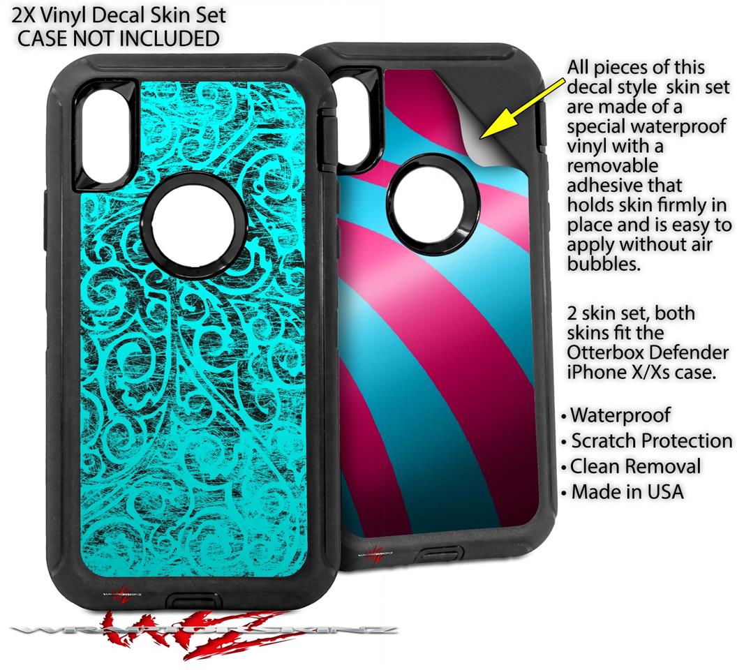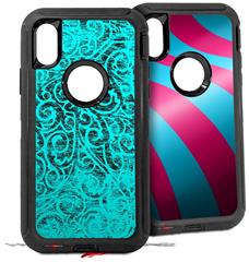 2x Decal style Skin Wrap Set compatible with Otterbox Defender iPhone X and Xs Case - Folder Doodles Neon Teal (CASE NOT INCLUDED)