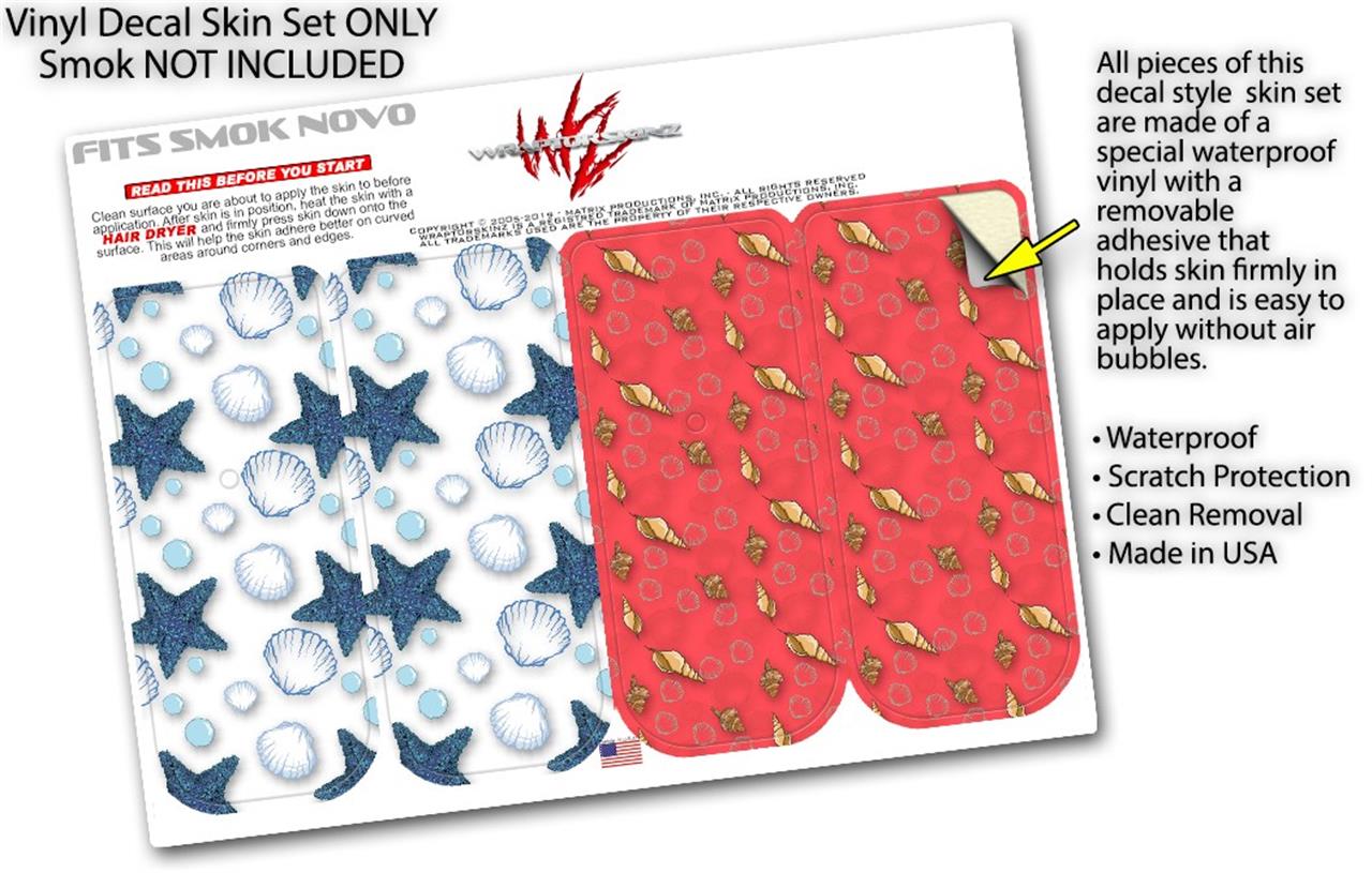 Skin Decal Wrap 2 Pack for Smok Novo v1 Starfish and Sea Shells White VAPE NOT INCLUDED