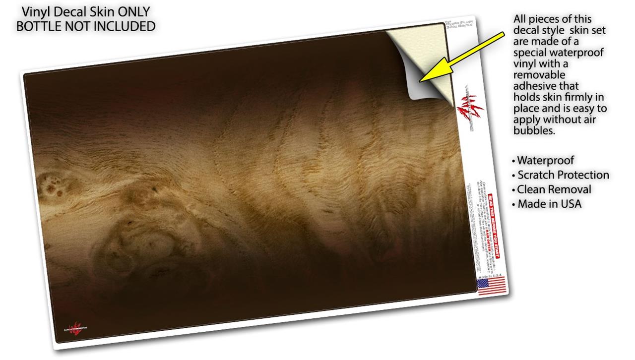Skin Wrap Decal compatible with Hydro Flask Wide Mouth Bottle 32oz Exotic Wood White Oak Burl Burst Dark Mocha (BOTTLE NOT INCLUDED)