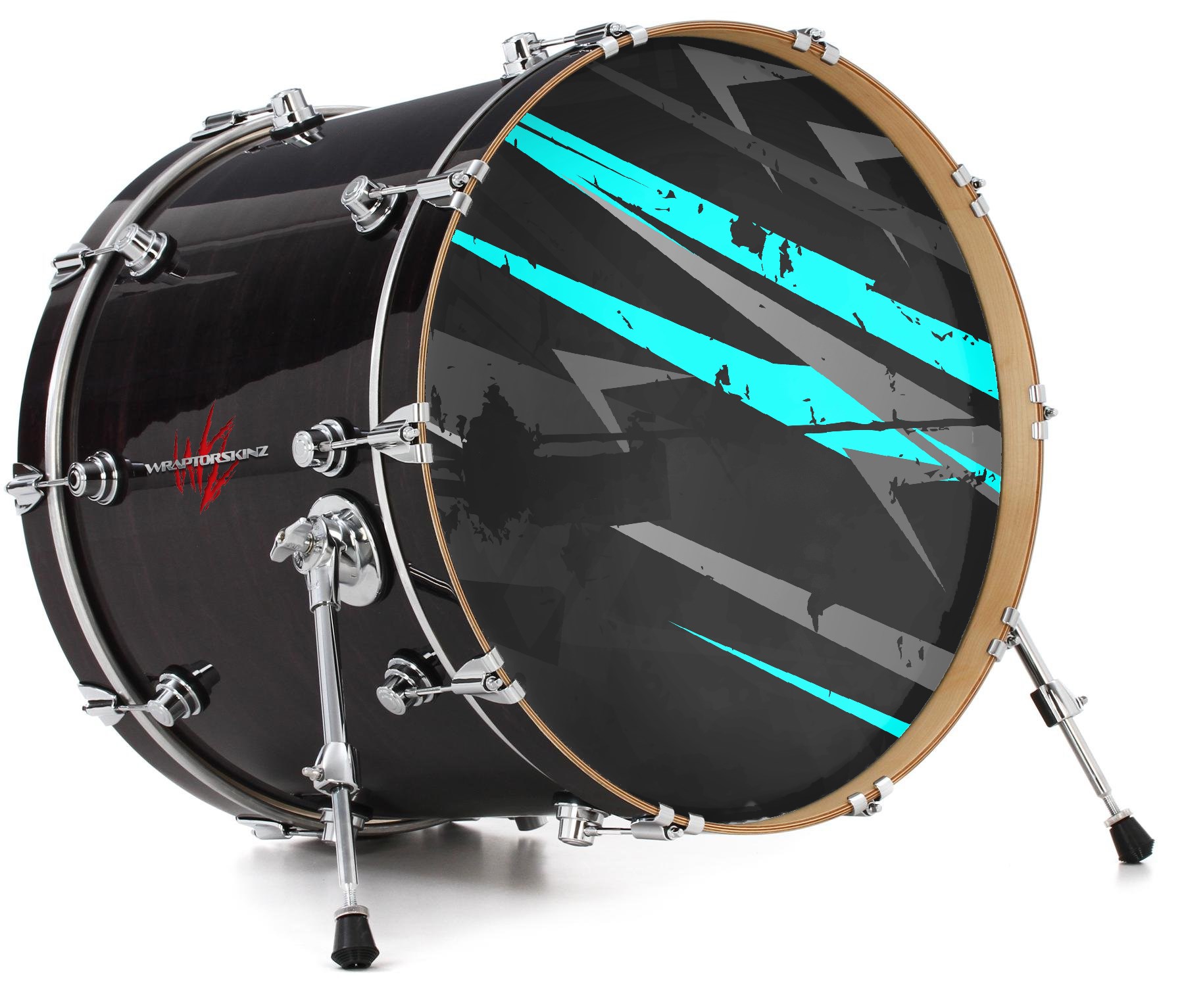 This design also available in other sizes. WraptorSkinz® skin wraps compatible with most kick drum heads. Printed using superb photo quality designs and vibrant colors printed with special fade resistant inks that last even in direct sun for years. WraptorSkinz are a composite three layer commercial grade materials vinyl. The bottom layer is a air release, grey block out removable adhesive that hides existing graphics on the drum head and is easily applied without air bubbles. The middle layer is a flexible vinyl printed with UV protected, fade resistant inks that deliver superb photo quality designs in vibrant colors. Finally, we bond a professional grade laminate over the entire skin adding a glossy protective finish.