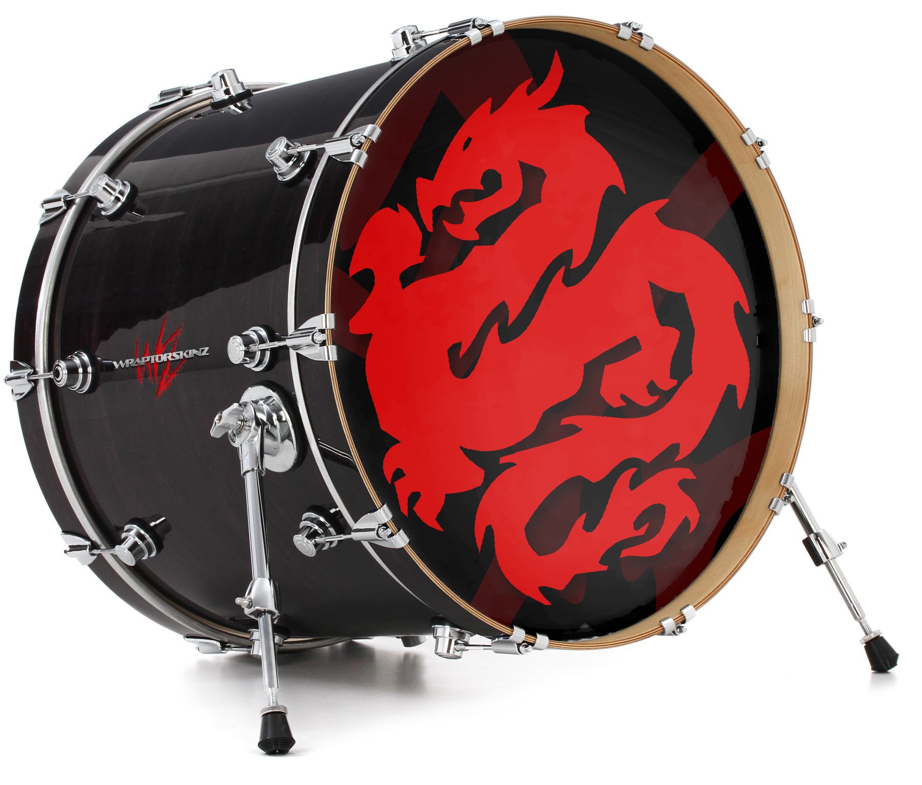 Vinyl Decal Skin Wrap for 22" Bass Kick Drum Head Oriental Dragon Red on Black - DRUM HEAD NOT INCLUDED