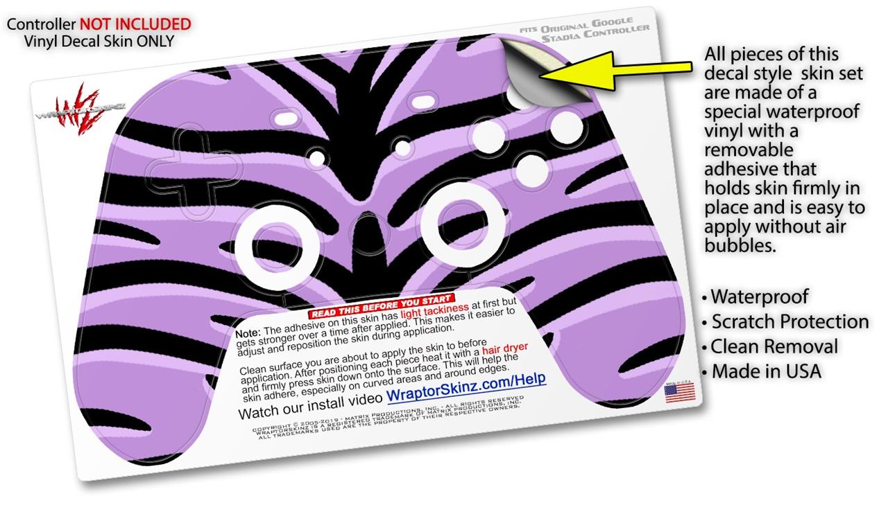 Skin Decal Wrap works with Original Google Stadia Controller Purple Tiger Skin Only CONTROLLER NOT INCLUDED