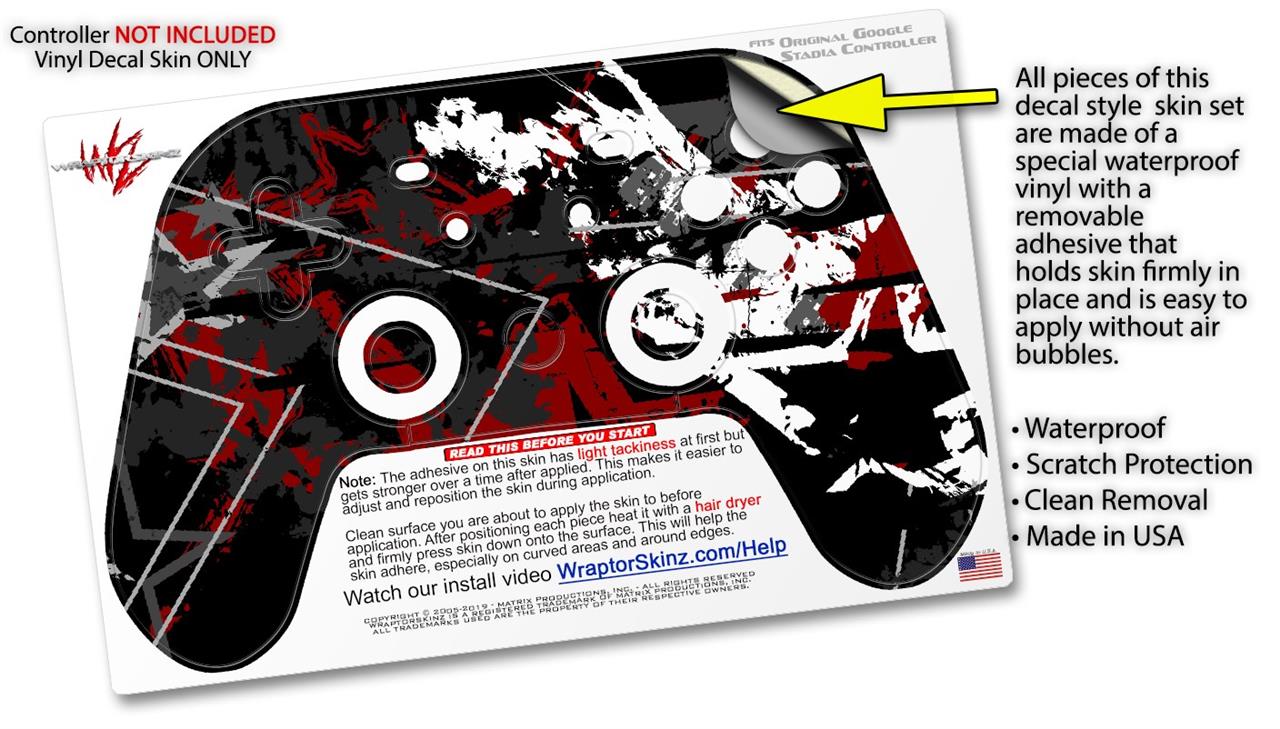This product is in no way affiliated with or endorsed by Google. WraptorSkinz® skin wraps work with the Original Google Stadia version 1 Controller. Printed using superb photo quality designs and vibrant colors printed with special fade resistant inks that last even in direct sun for years. WraptorSkinz are a composite of two layers of commercial grade materials. The bottom layer is a soft, flexible vinyl with a special removable adhesive that is easily positioned, applied without air bubbles. Next, we print the bottom layer with UV protected, fade resistant inks that deliver superb photo quality designs in vibrant colors. Finally, we bond a professional grade laminate over the entire skin adding a glossy protective finish.
