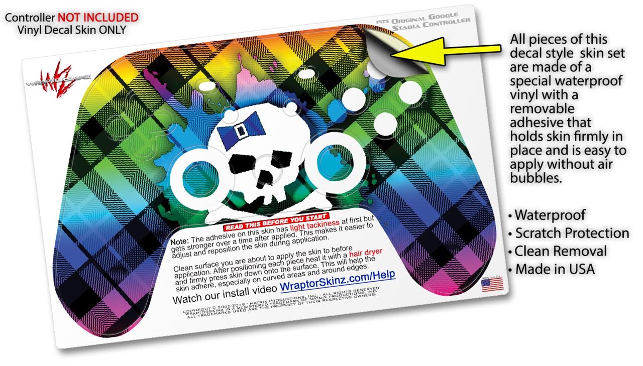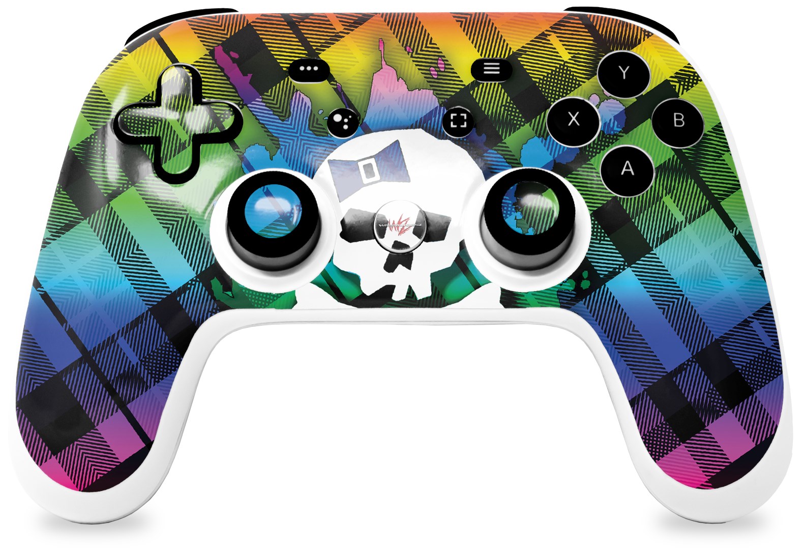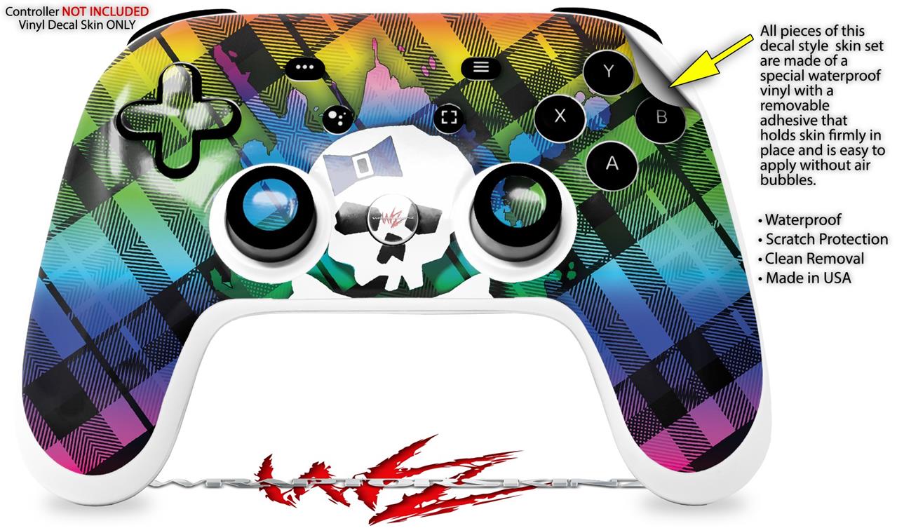 Skin Decal Wrap works with Original Google Stadia Controller Rainbow Plaid Skull Skin Only CONTROLLER NOT INCLUDED