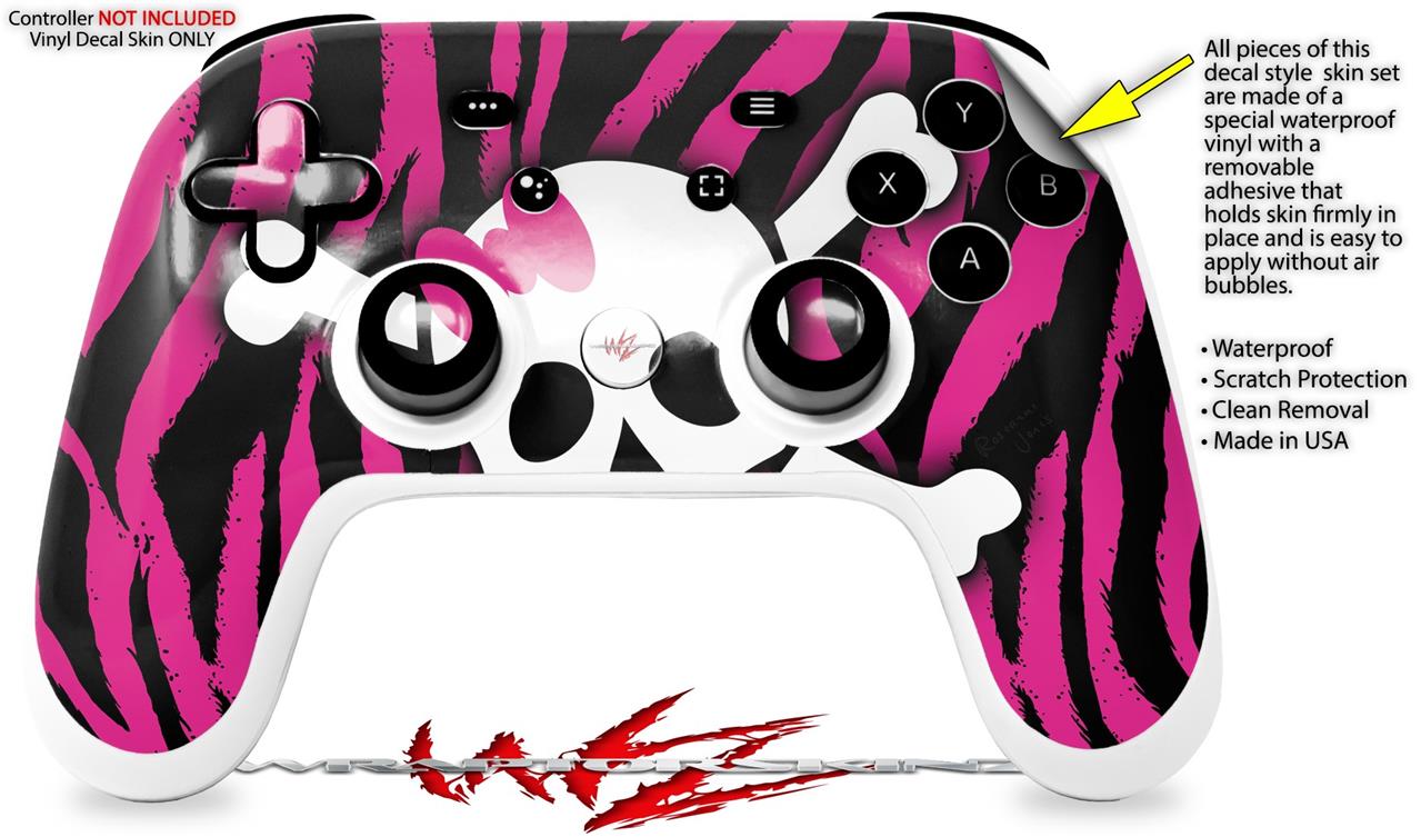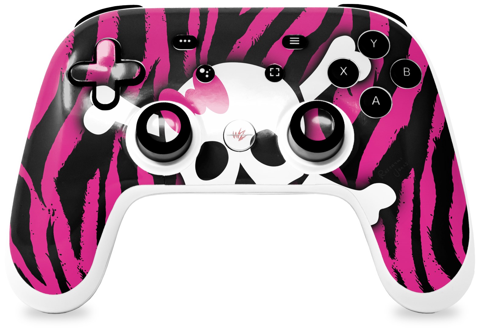 Skin Decal Wrap works with Original Google Stadia Controller Pink Zebra Skull Skin Only CONTROLLER NOT INCLUDED