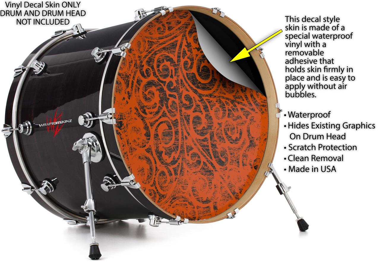 Vinyl Decal Skin Wrap for 20" Bass Kick Drum Head Folder Doodles Burnt Orange - DRUM HEAD NOT INCLUDED