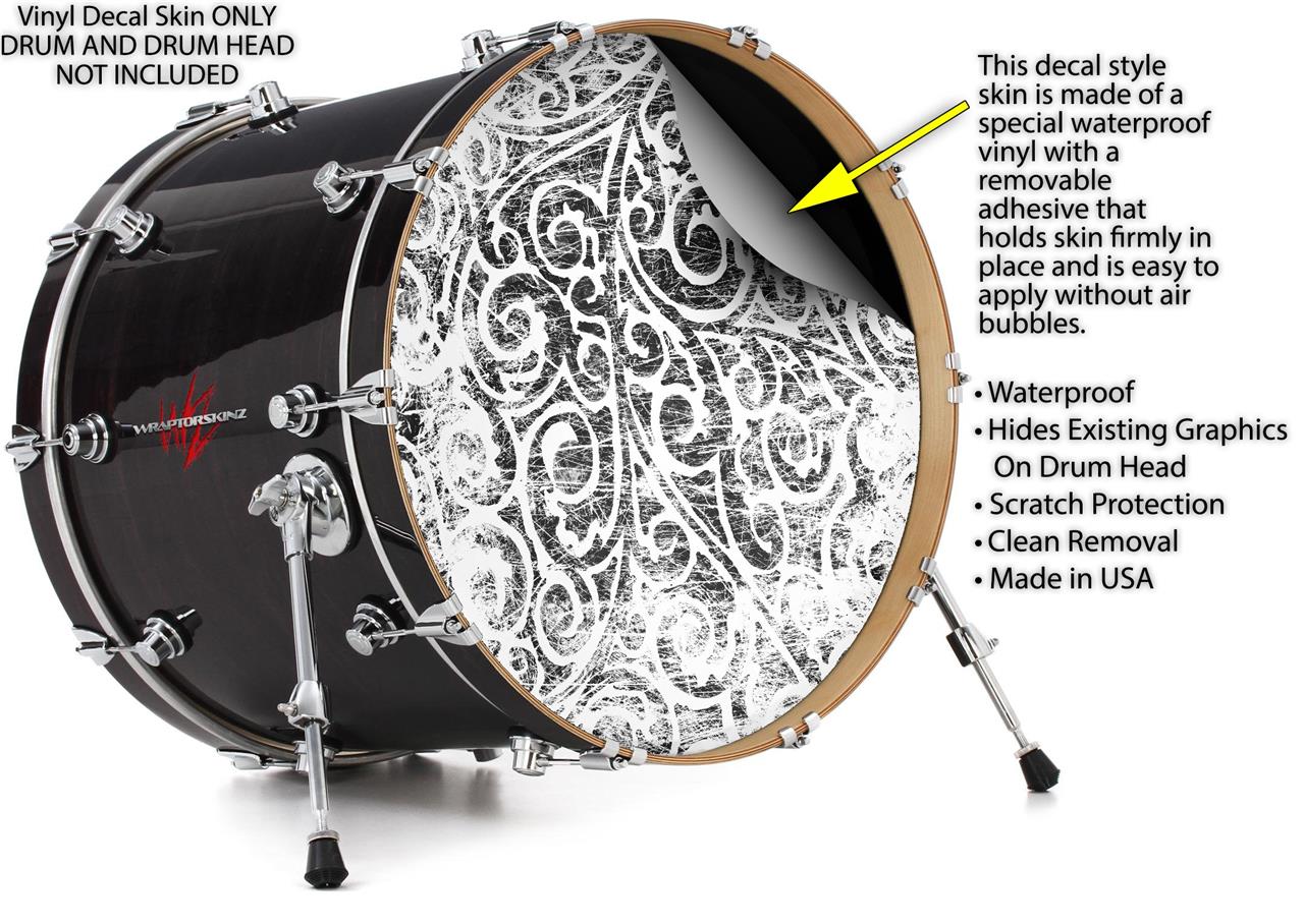 Vinyl Decal Skin Wrap for 20" Bass Kick Drum Head Folder Doodles White - DRUM HEAD NOT INCLUDED