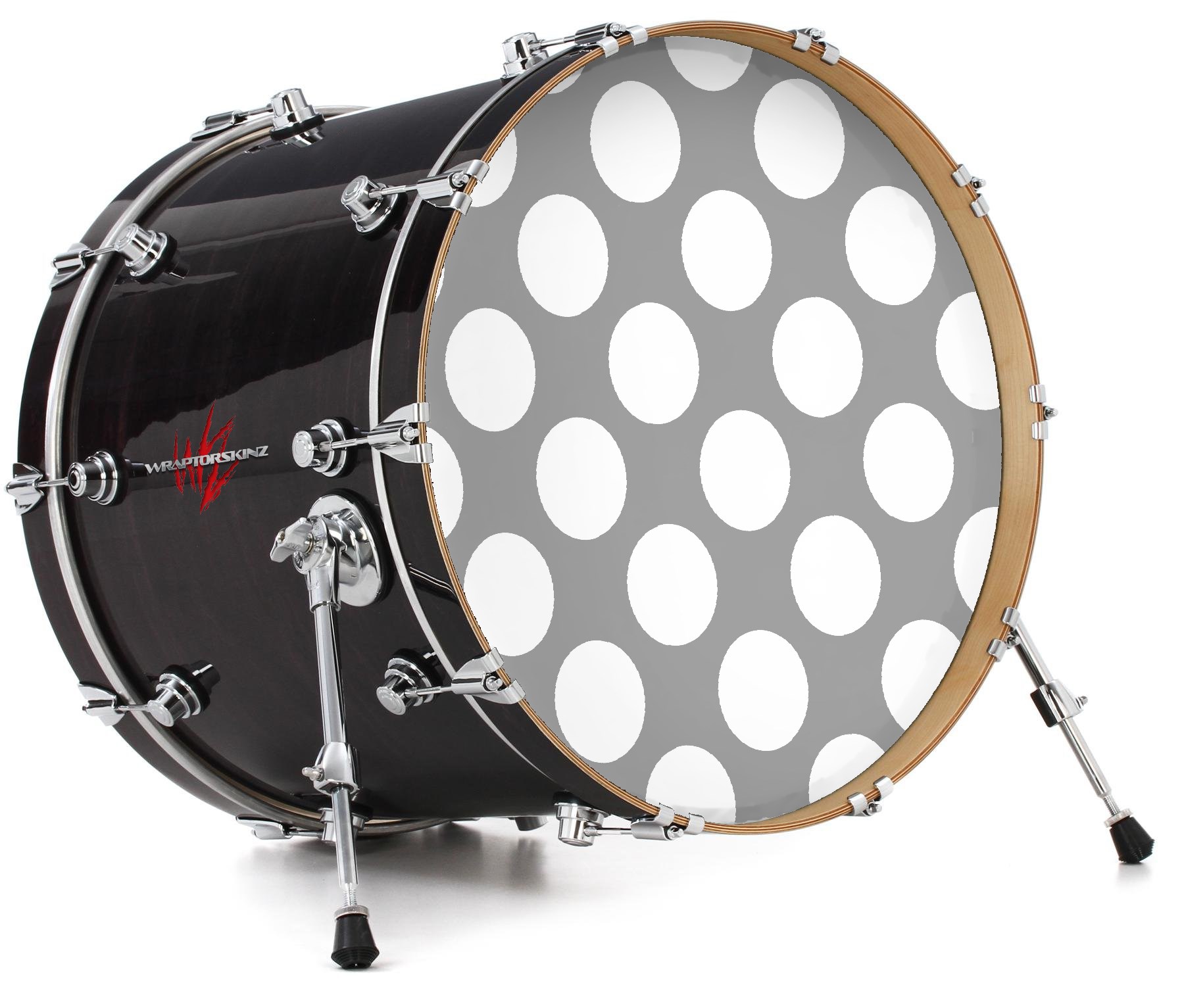 Vinyl Decal Skin Wrap for 20" Bass Kick Drum Head Kearas Polka Dots Whtie On Gray - DRUM HEAD NOT INCLUDED