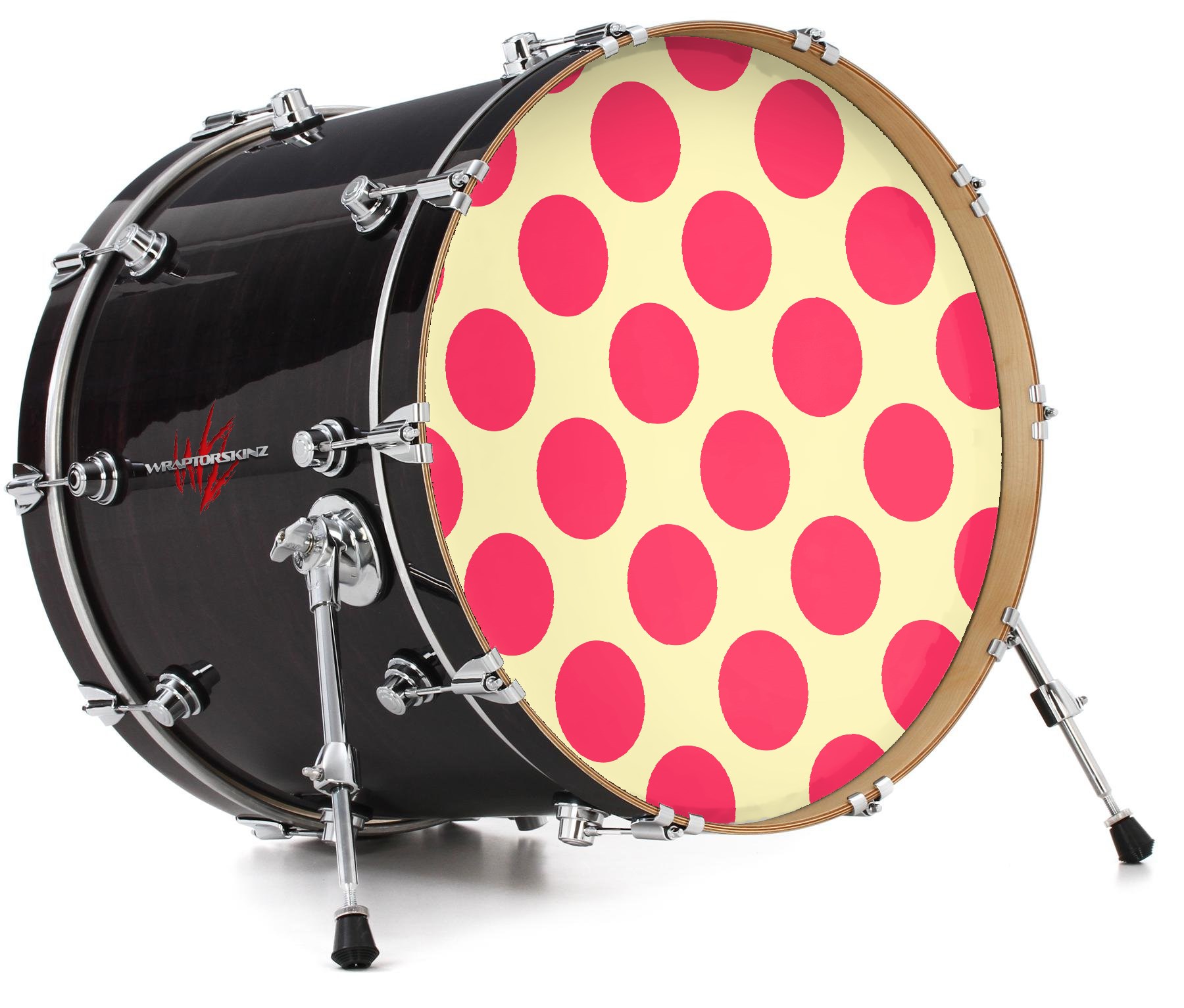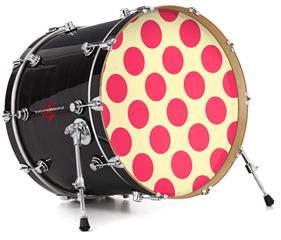 Decal Skin works with most 24" Bass Kick Drum Heads Kearas Polka Dots Pink On Cream - DRUM HEAD NOT INCLUDED