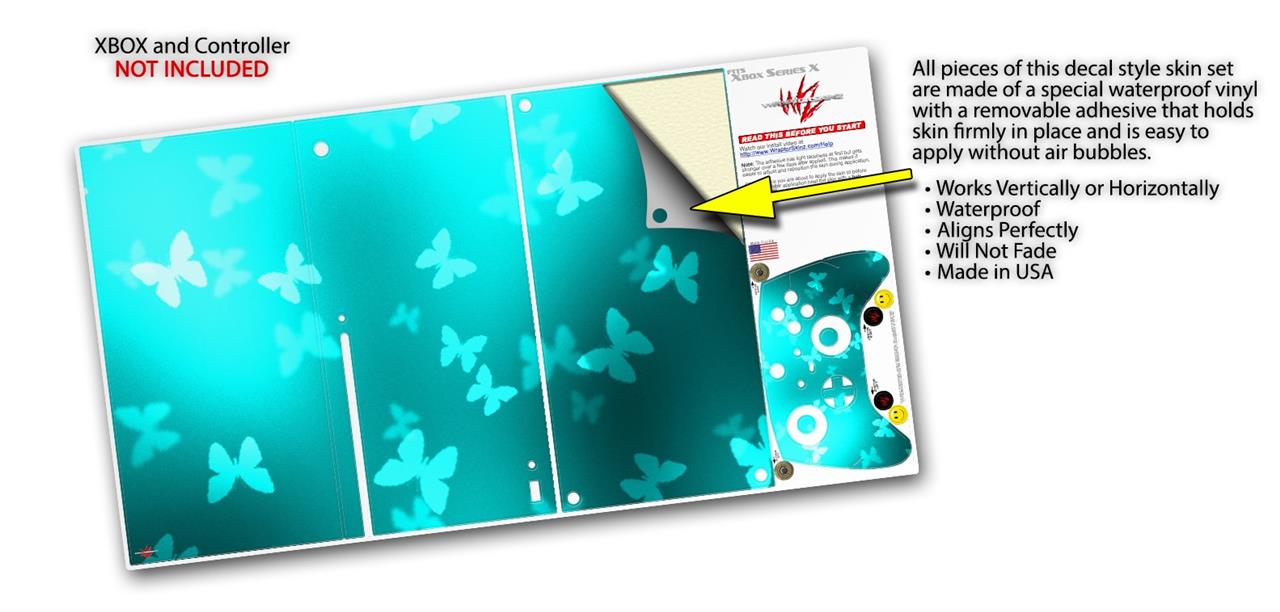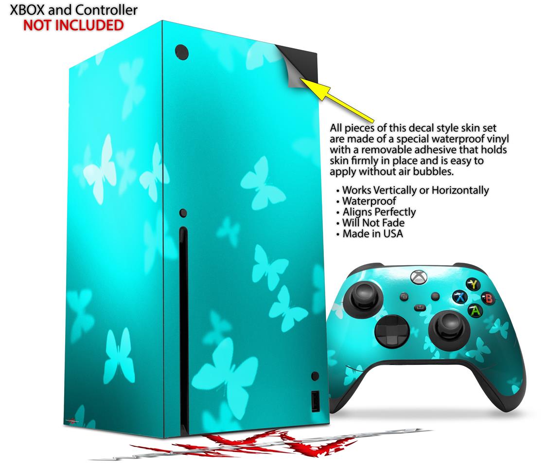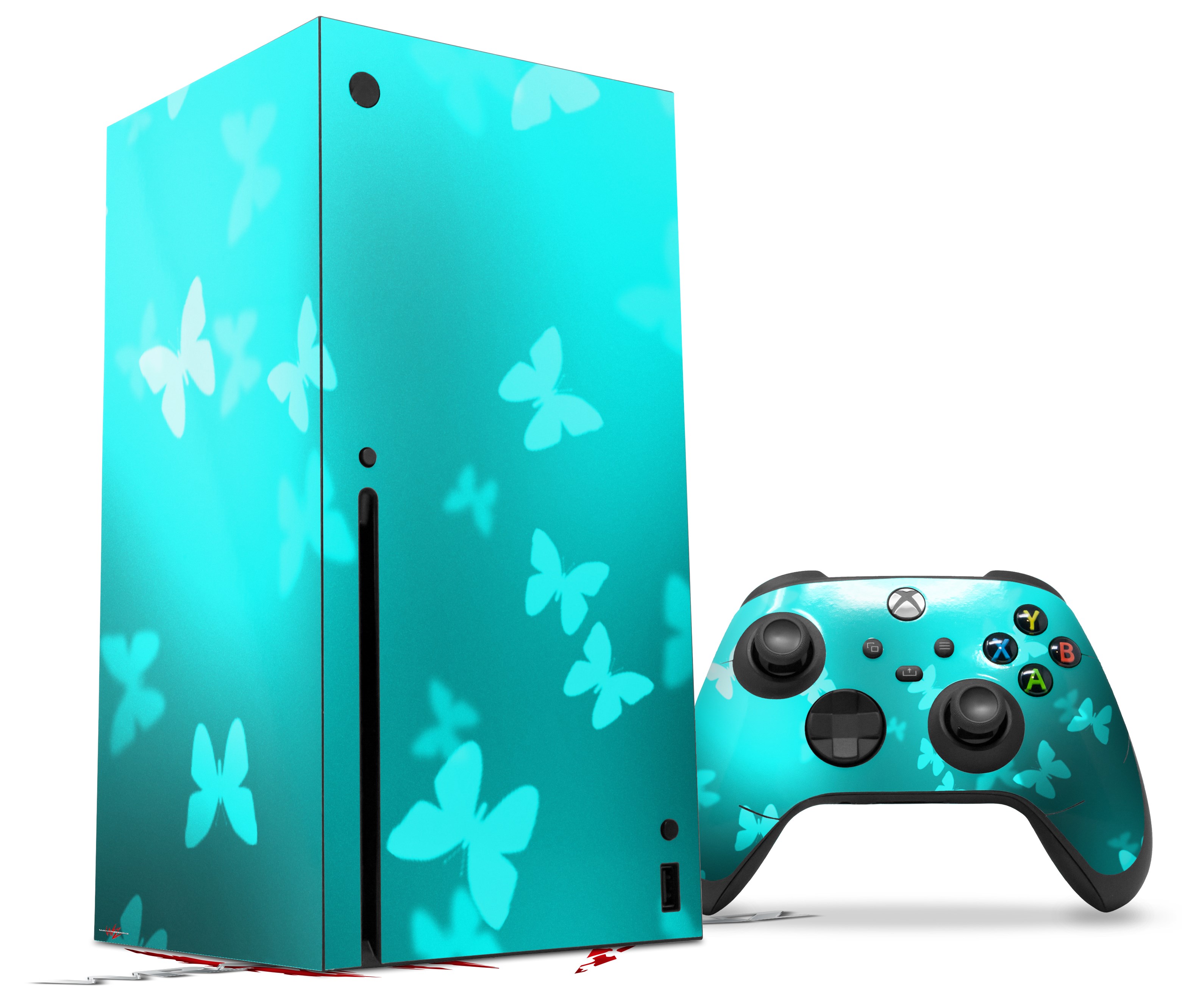 WraptorSkinz Skin Wrap compatible with the 2020 XBOX Series X Console and Controller Bokeh Butterflies Neon Teal (XBOX NOT INCLUDED)
