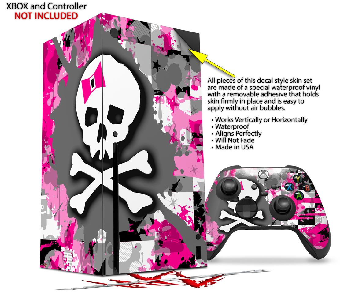 WraptorSkinz Skin Wrap compatible with the 2020 XBOX Series X Console and Controller Girly Pink Bow Skull (XBOX NOT INCLUDED)