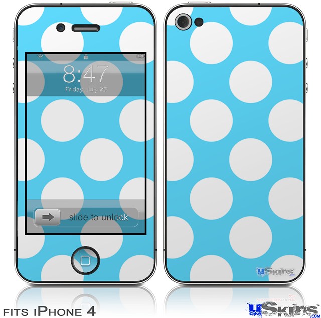 iPhone 4 Decal Style Vinyl Skin - Kearas Polka Dots White And Blue (DOES NOT fit newer iPhone 4S)