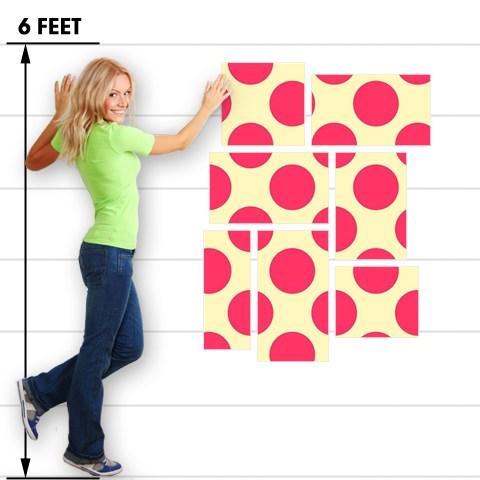 Kearas Polka Dots Pink On Cream - 7 Piece Fabric Peel and Stick Wall Skin Art (50x38 inches)