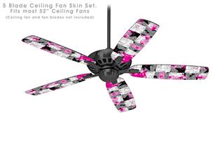 Checker Skull Splatter Pink - Ceiling Fan Skin Kit fits most 52 inch fans (FAN and BLADES SOLD SEPARATELY)