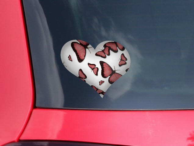 Butterflies Pink - I Heart Love Car Window Decal 6.5 x 5.5 inches