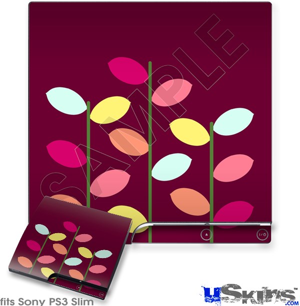 Decal Skin compatible with Sony PS3 Slim Plain Leaves On Burgundy