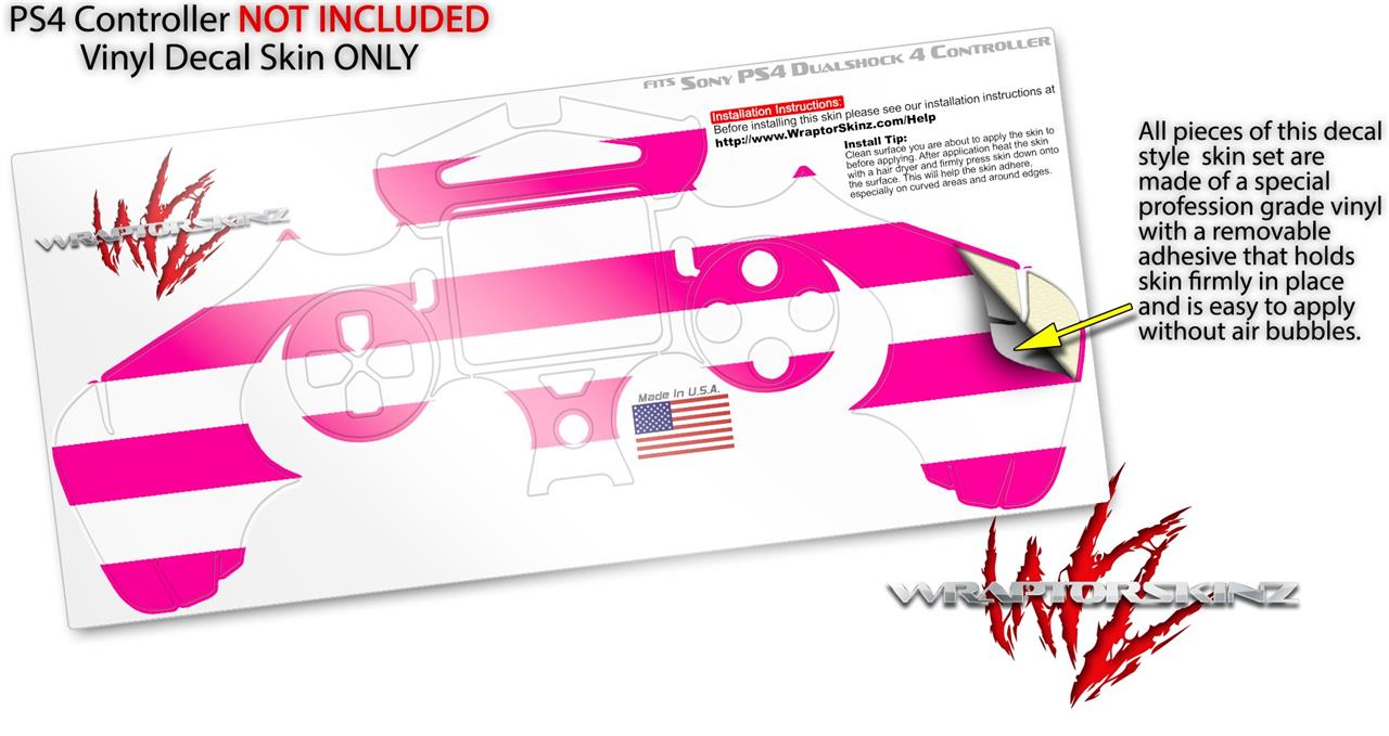 WraptorSkinz Skin compatible with Sony PS4 Dualshock Controller PlayStation 4 Original Slim and Pro Psycho Stripes Hot Pink and White (CONTROLLER NOT INCLUDED)