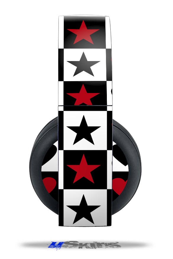 Vinyl Decal Skin Wrap compatible with Original Sony PlayStation 4 Gold Wireless Headphones Hearts and Stars Red (PS4 HEADPHONES NOT INCLUDED)