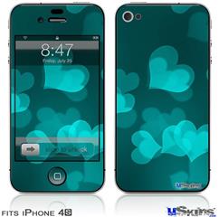 iPhone 4S Decal Style Vinyl Skin - Bokeh Hearts Neon Teal