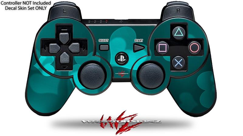 Sony PS3 Controller Decal Style Skin - Bokeh Hearts Neon Teal (CONTROLLER NOT INCLUDED)