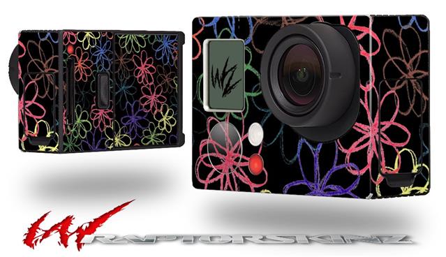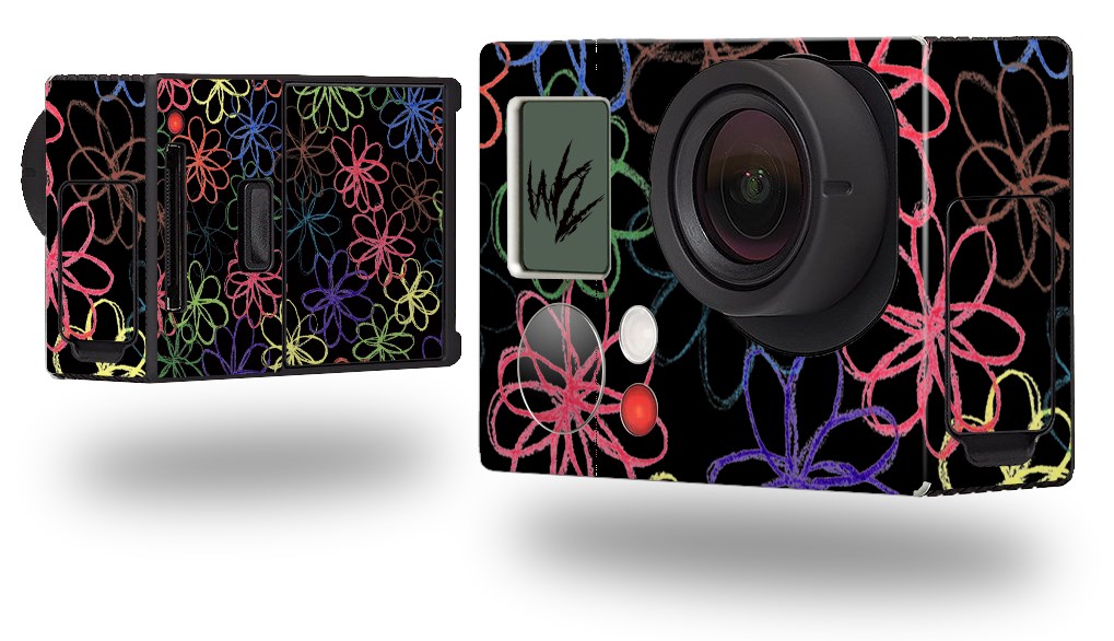 Kearas Flowers on Black - Decal Style Skin fits GoPro Hero 3+ Camera (GOPRO NOT INCLUDED)