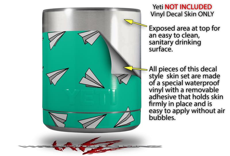 Skin Decal Wrap for Yeti Rambler Lowball - Paper Planes Turquoise