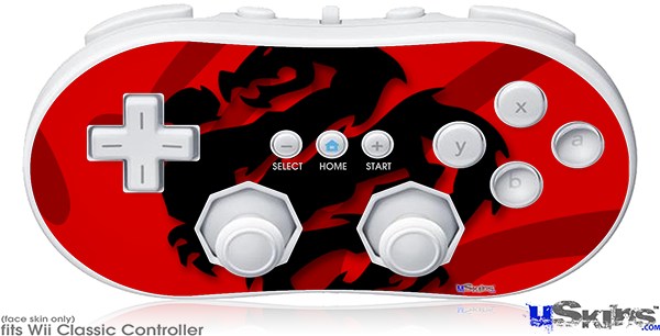 Wii Classic Controller Skin - Oriental Dragon Black on Red