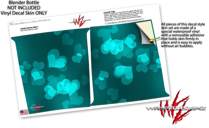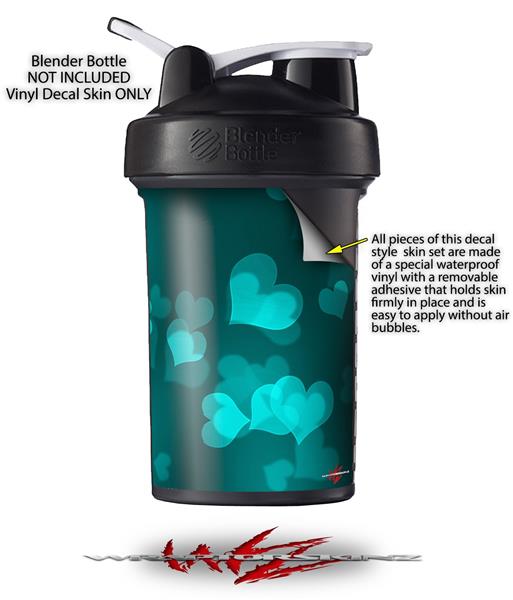 Decal Style Skin Wrap works with Blender Bottle 22oz ProStak Bokeh Hearts Neon Teal (BOTTLE NOT INCLUDED)