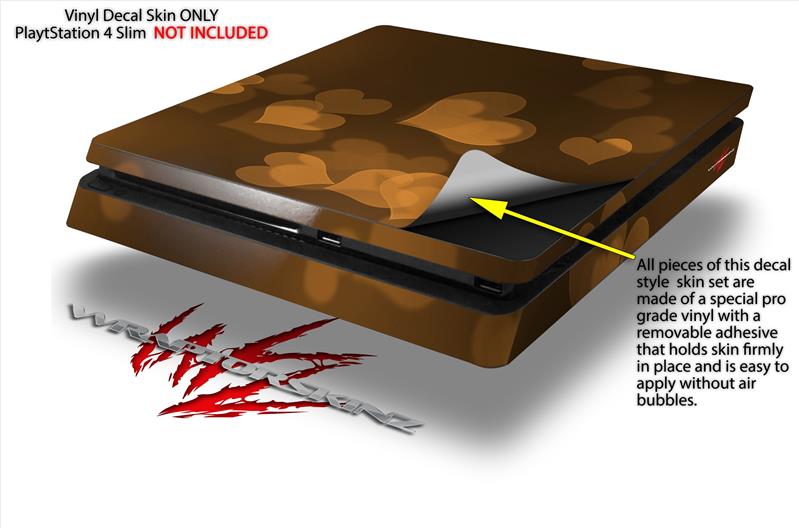 Vinyl Decal Skin Wrap compatible with Sony PlayStation 4 Slim Console Bokeh Hearts Orange (PS4 NOT INCLUDED)