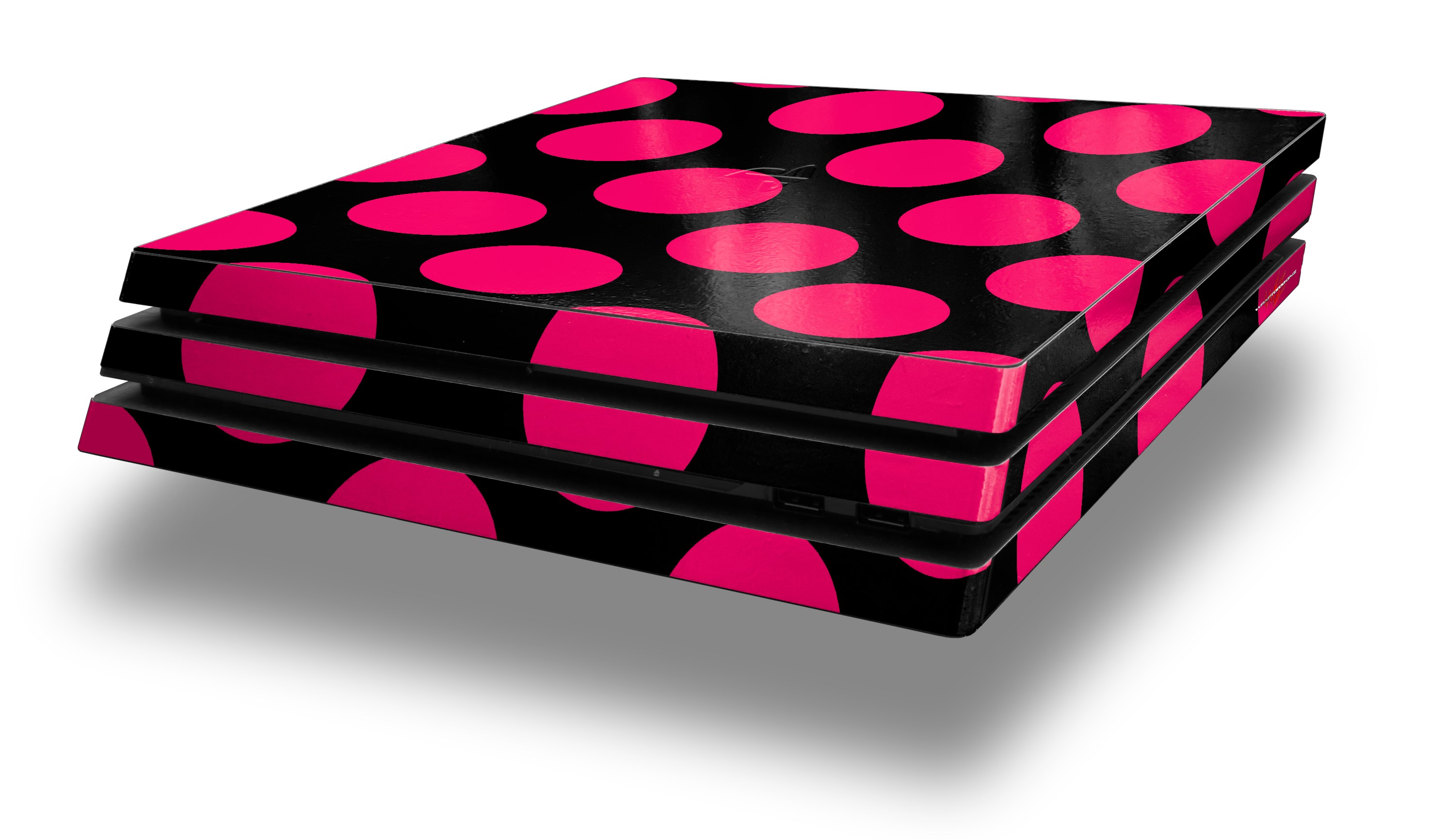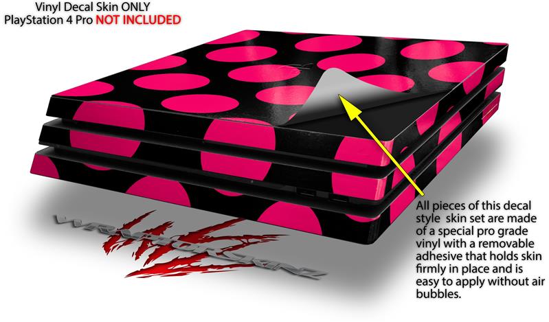 Vinyl Decal Skin Wrap compatible with Sony PlayStation 4 Pro Console Kearas Polka Dots Pink On Black (PS4 NOT INCLUDED)