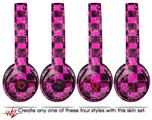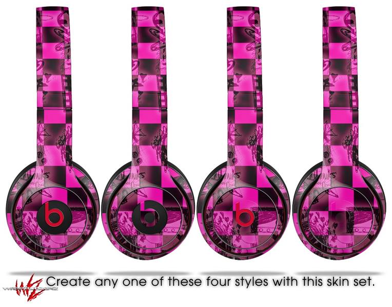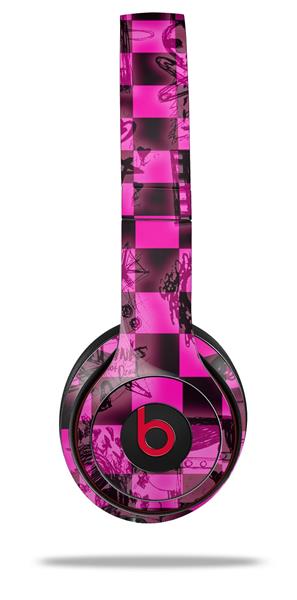 WraptorSkinz Skin Decal Wrap compatible with Beats Solo 2 and Solo 3 Wireless Headphones Pink Checkerboard Sketches (HEADPHONES NOT INCLUDED)